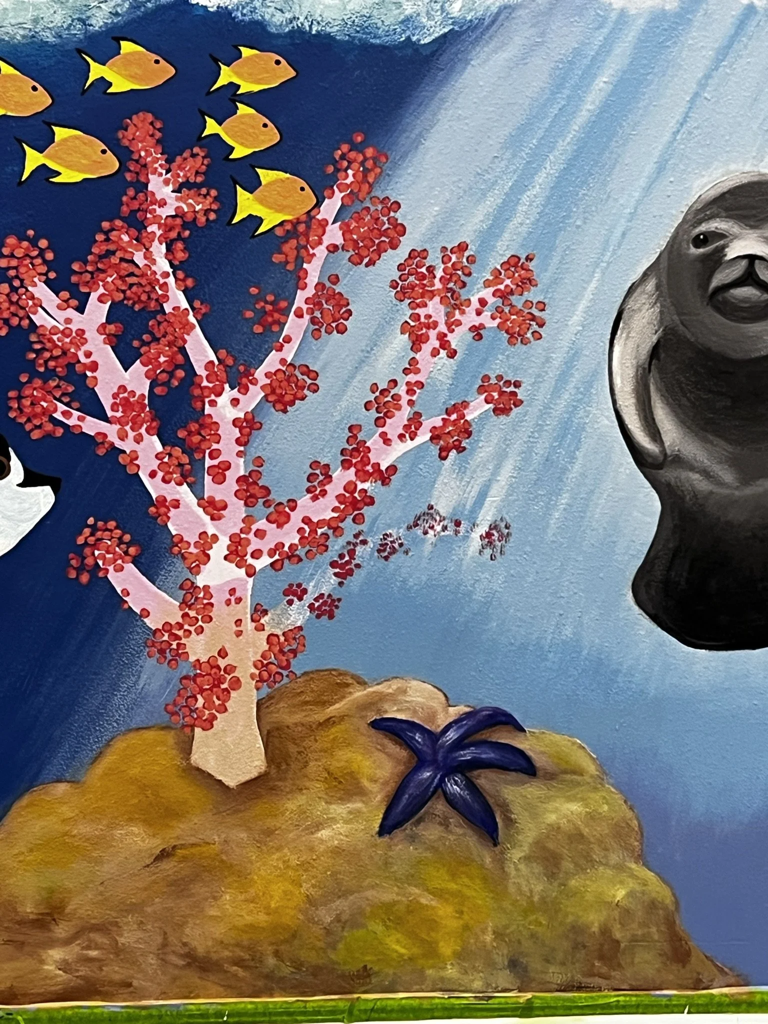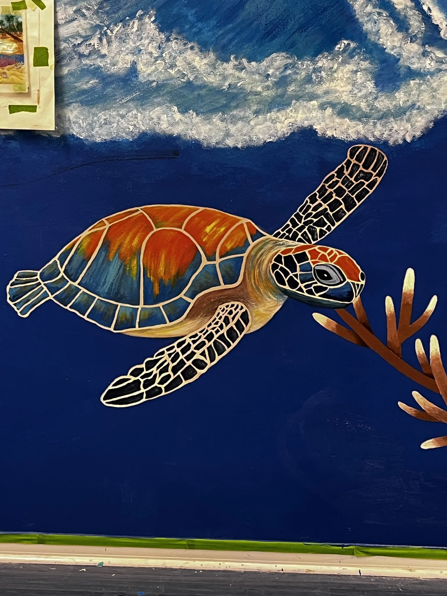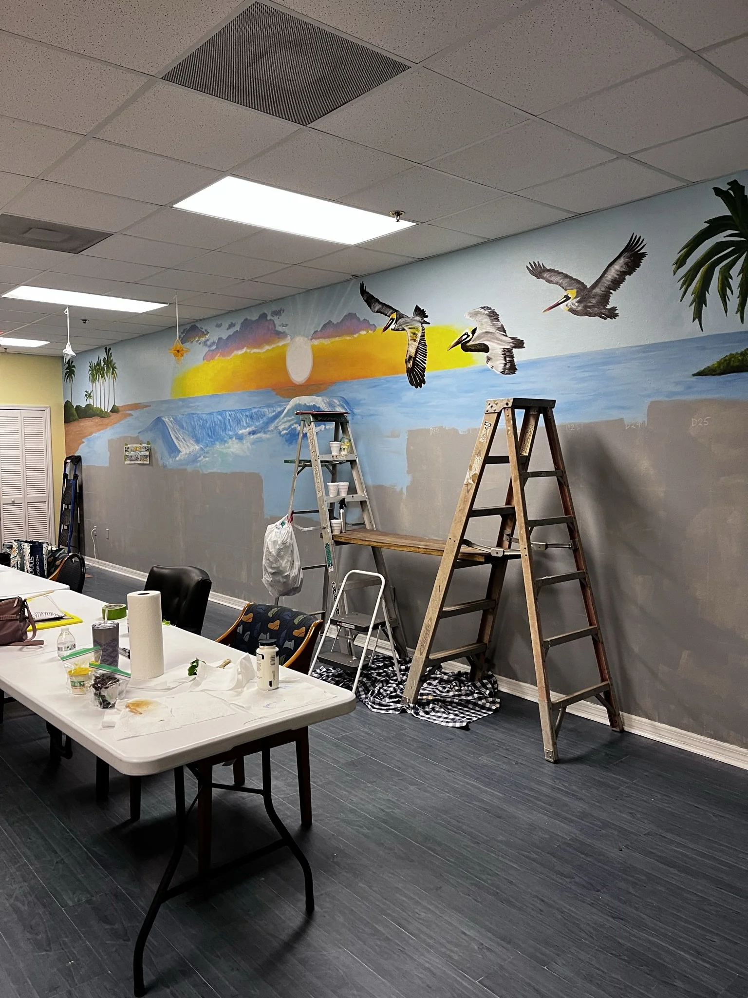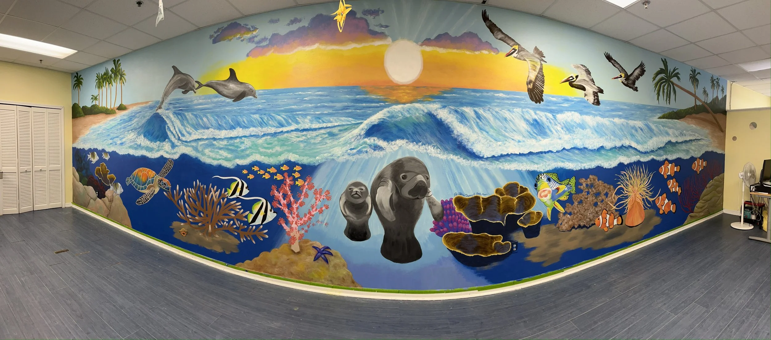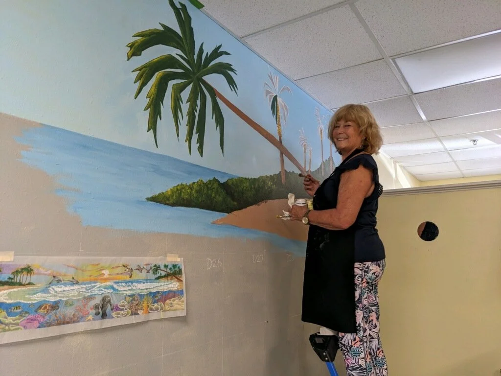 Patti Downey has created several artistic projects in the DeLand, Florida area. Patti designed this wonderful mural, then Patti & Sandy painted this ocean fantasy on a 35 ft. wall. It was a huge project and a shared labor of love. Caring 4 U Agency is located in Deltona, Florida.